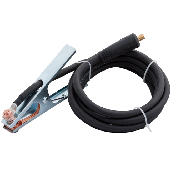 Miedziany przewód spawalniczy typu OnS (H01N2-D) 100/100V z zaciskiem masowym o długości 3 m (przekrój żyły 25 mm2), w osłonie gumowej do stosowania w temperaturze od -25°C do +80°C.